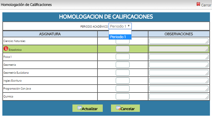 Homologación de calificaciones desde el Administrador del sistema en periodos académicos cerrador |