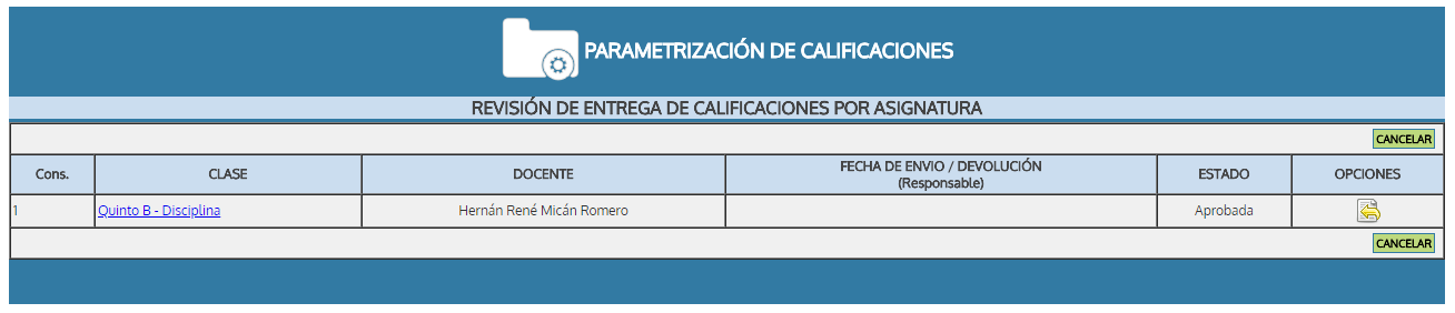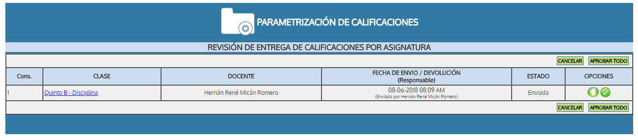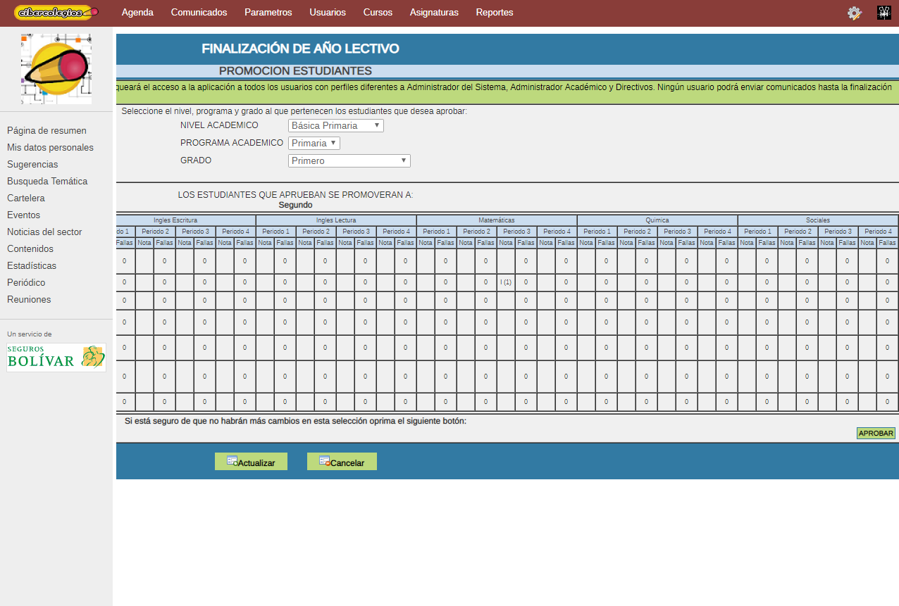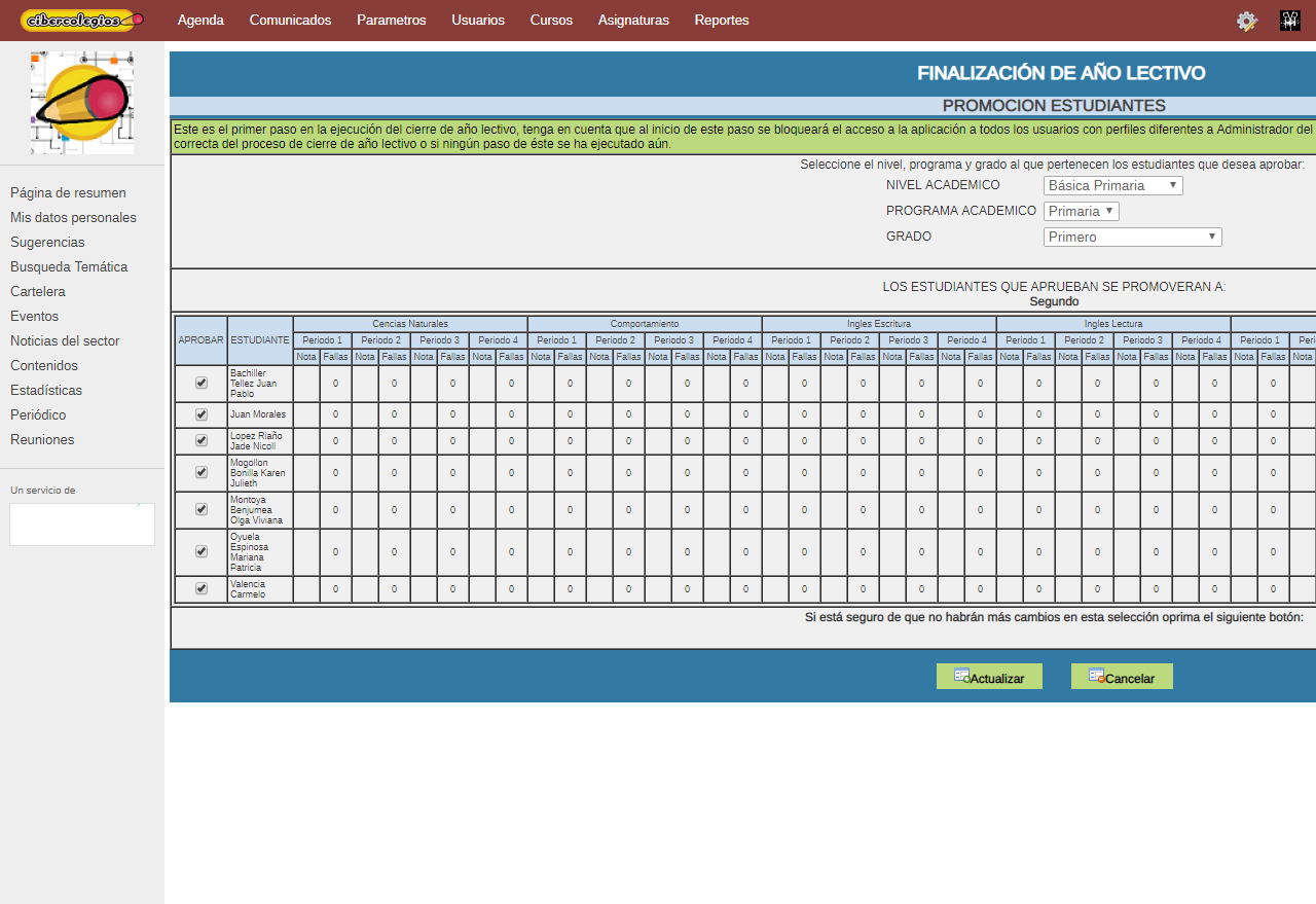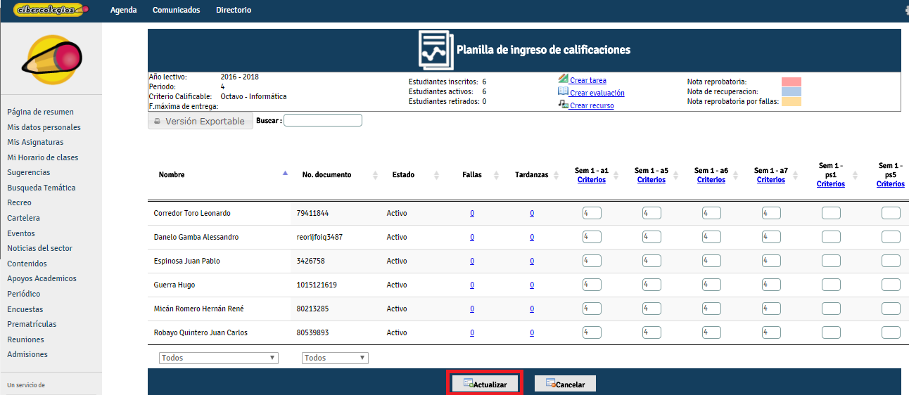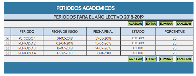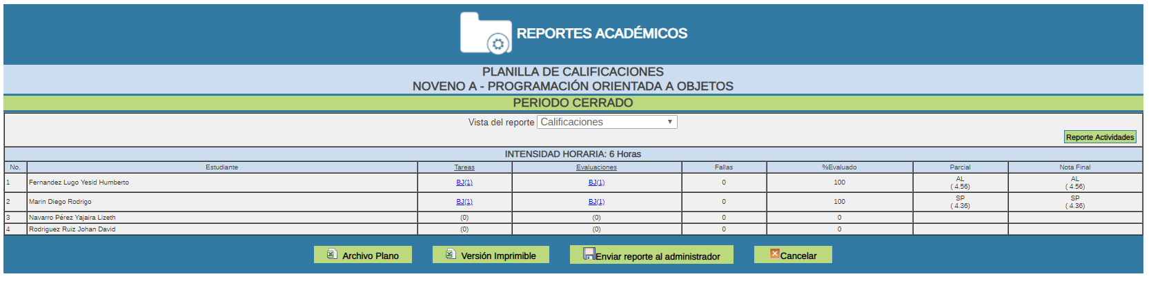 Gestión de planilla de calificaciones por periodos académicos desde el Administrador Académico |