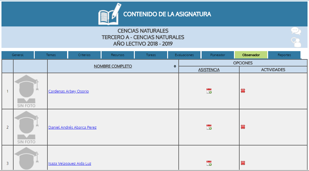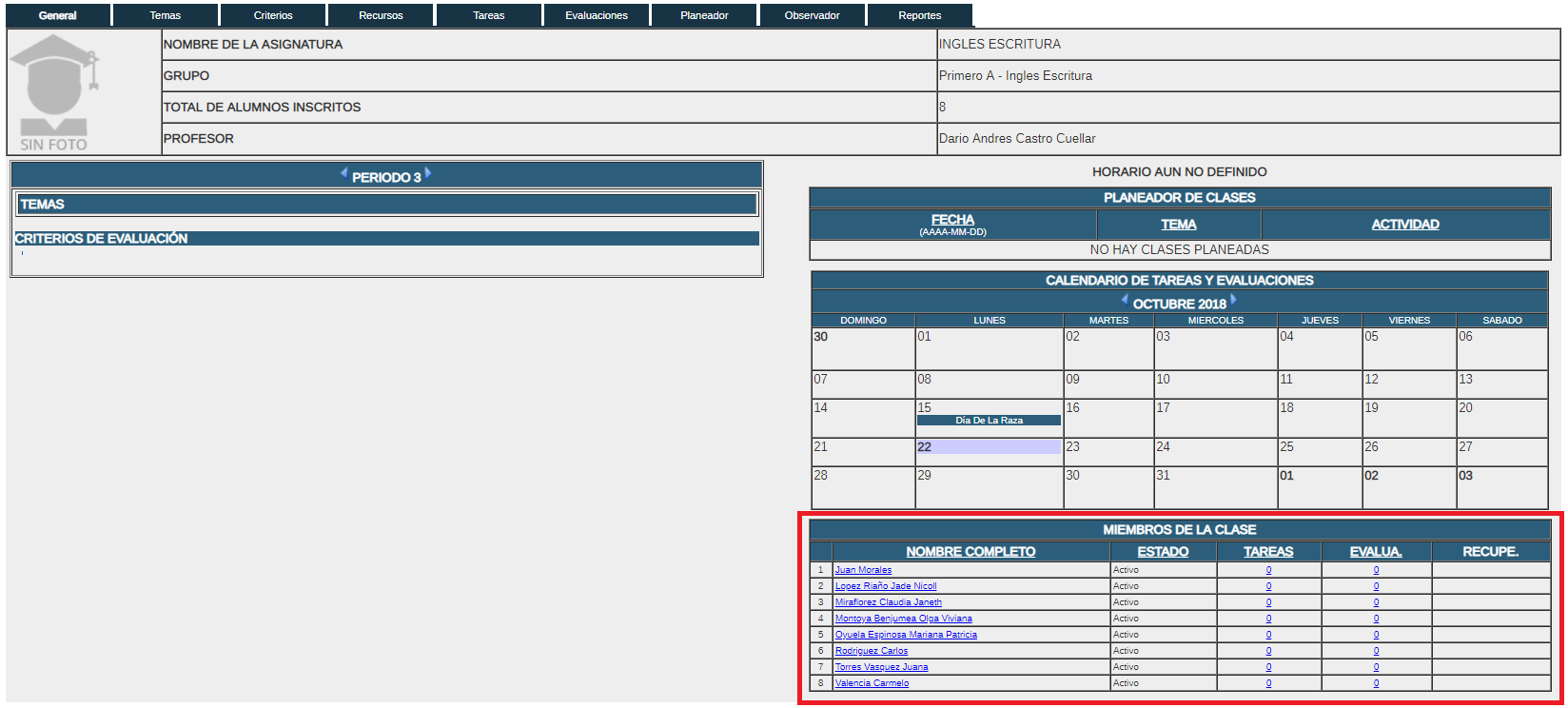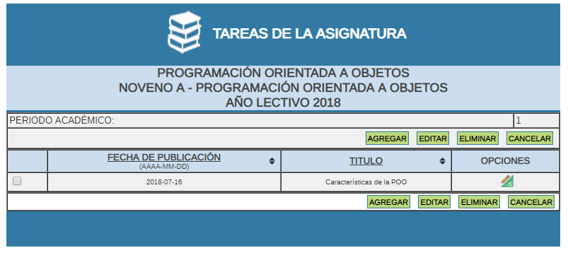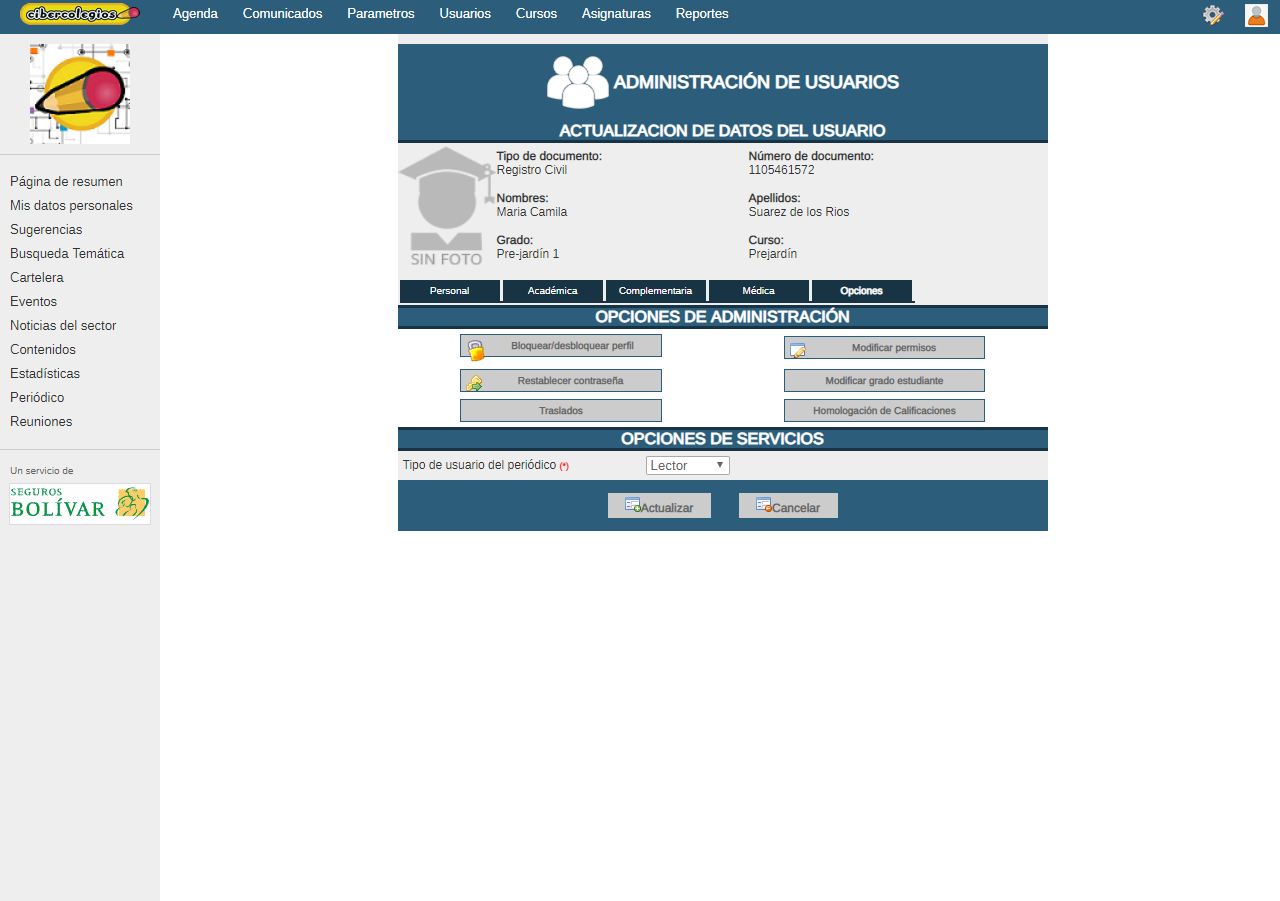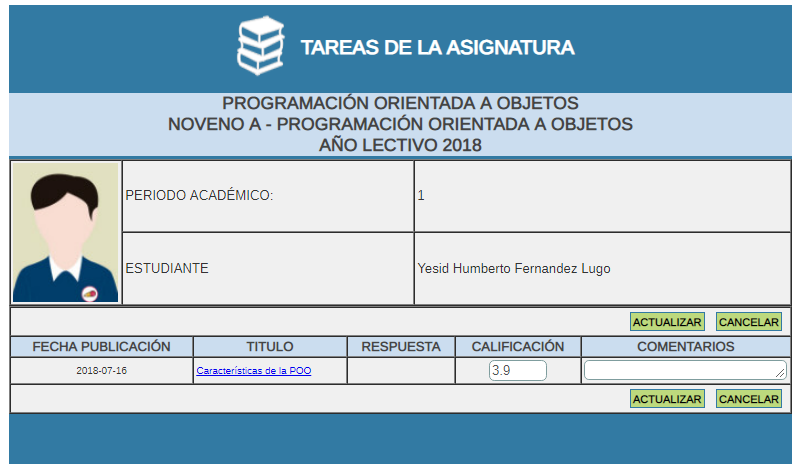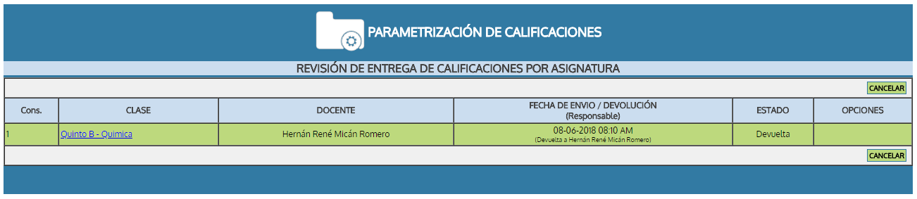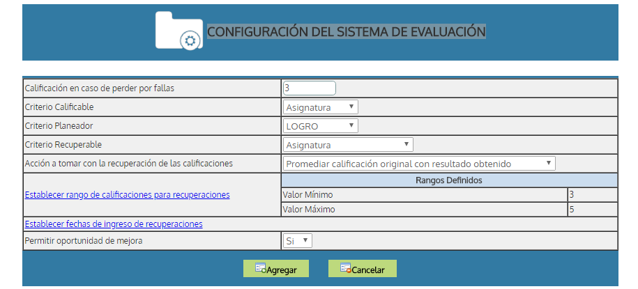 Gestión de planilla de calificaciones por periodos académicos desde el Administrador Académico |
