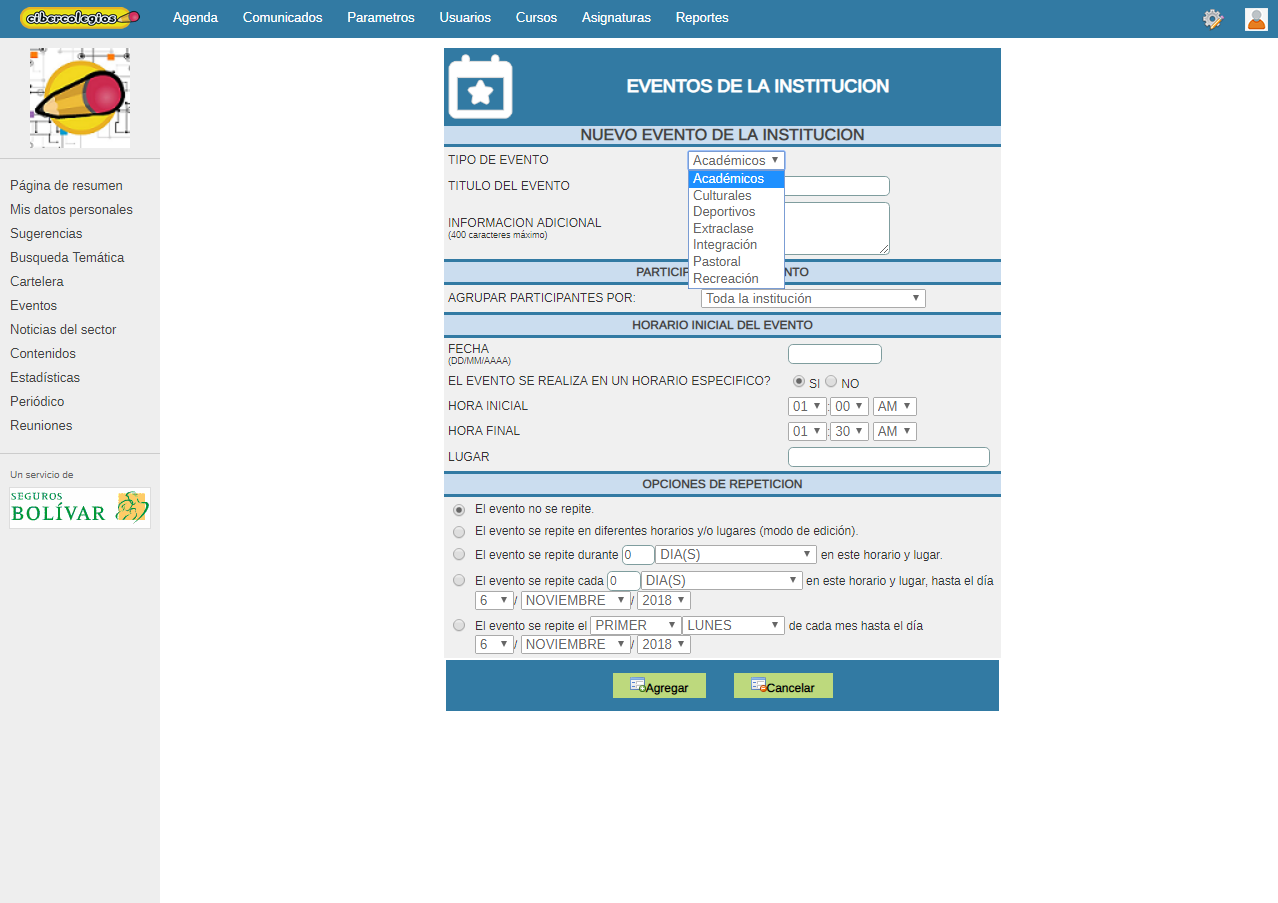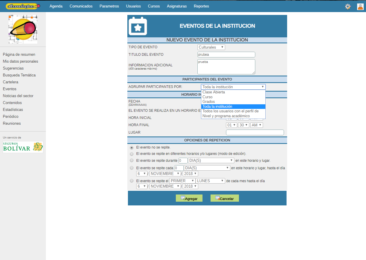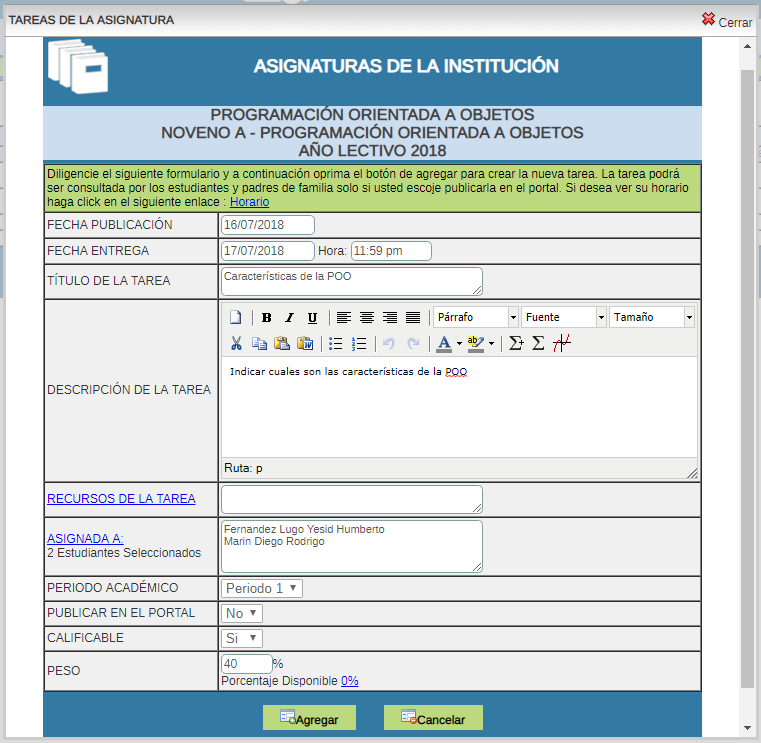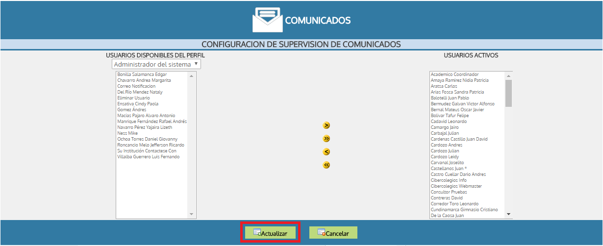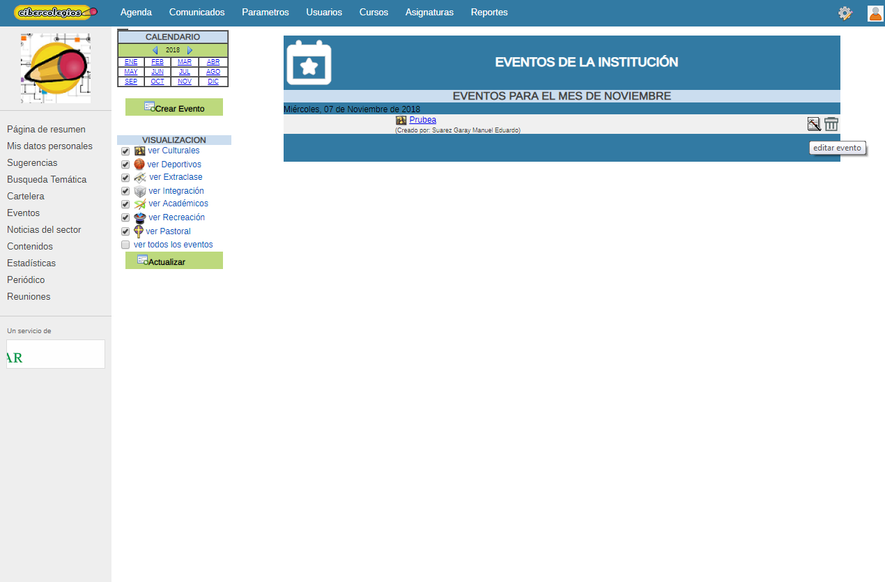 Gestión de planilla de calificaciones por periodos académicos desde el Administrador Académico |