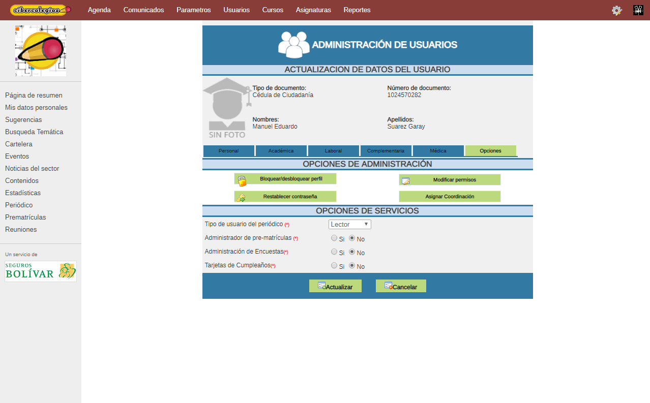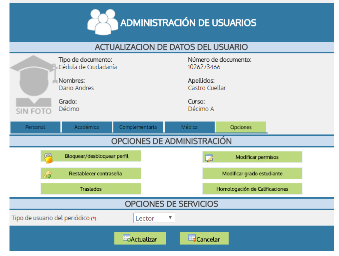 Esta actividad se realiza una sola vez al finalizar el año lectivo y en el momento que comencemos se les bloqueara automáticamente el ingreso a todos los usuarios de la institución, El cual es realiza por el administrador del sistema únicamente |