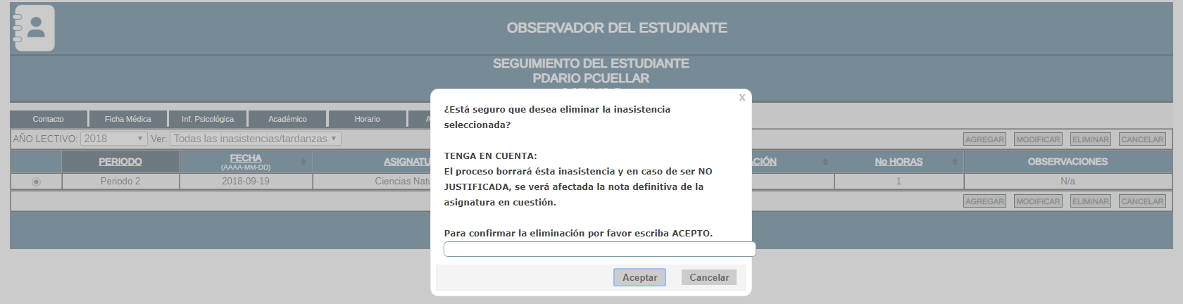 Paso a paso para realizar el proceso de eliminación de una inasistencia o tardanza de un estudiante |