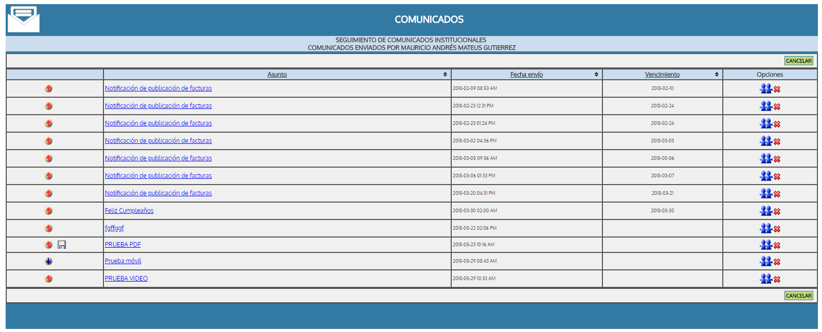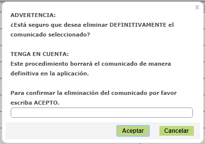 Proceso para que el usuario asignado supervisor de comunicados, elimine un comunicado enviado por un usuario |