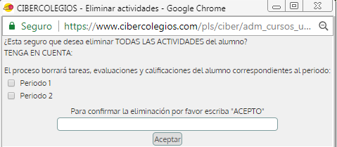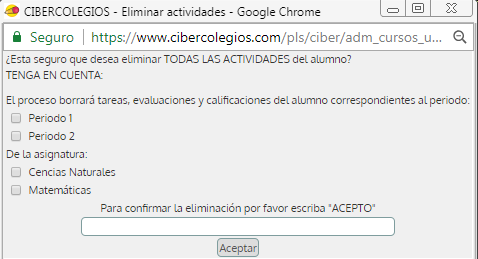 ¿Cómo eliminar las actividades de un estudiante de una materia y/o un periodo especifico? |