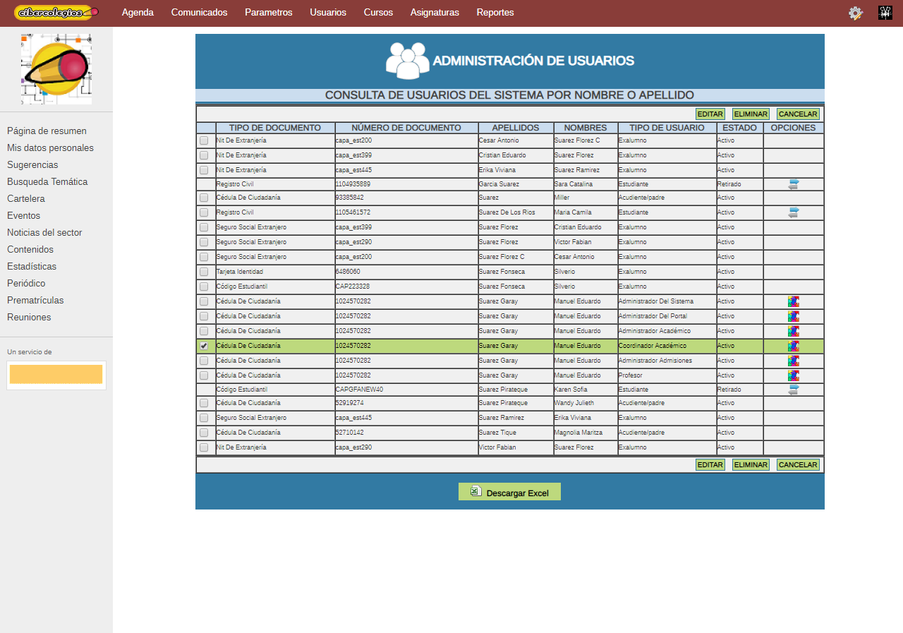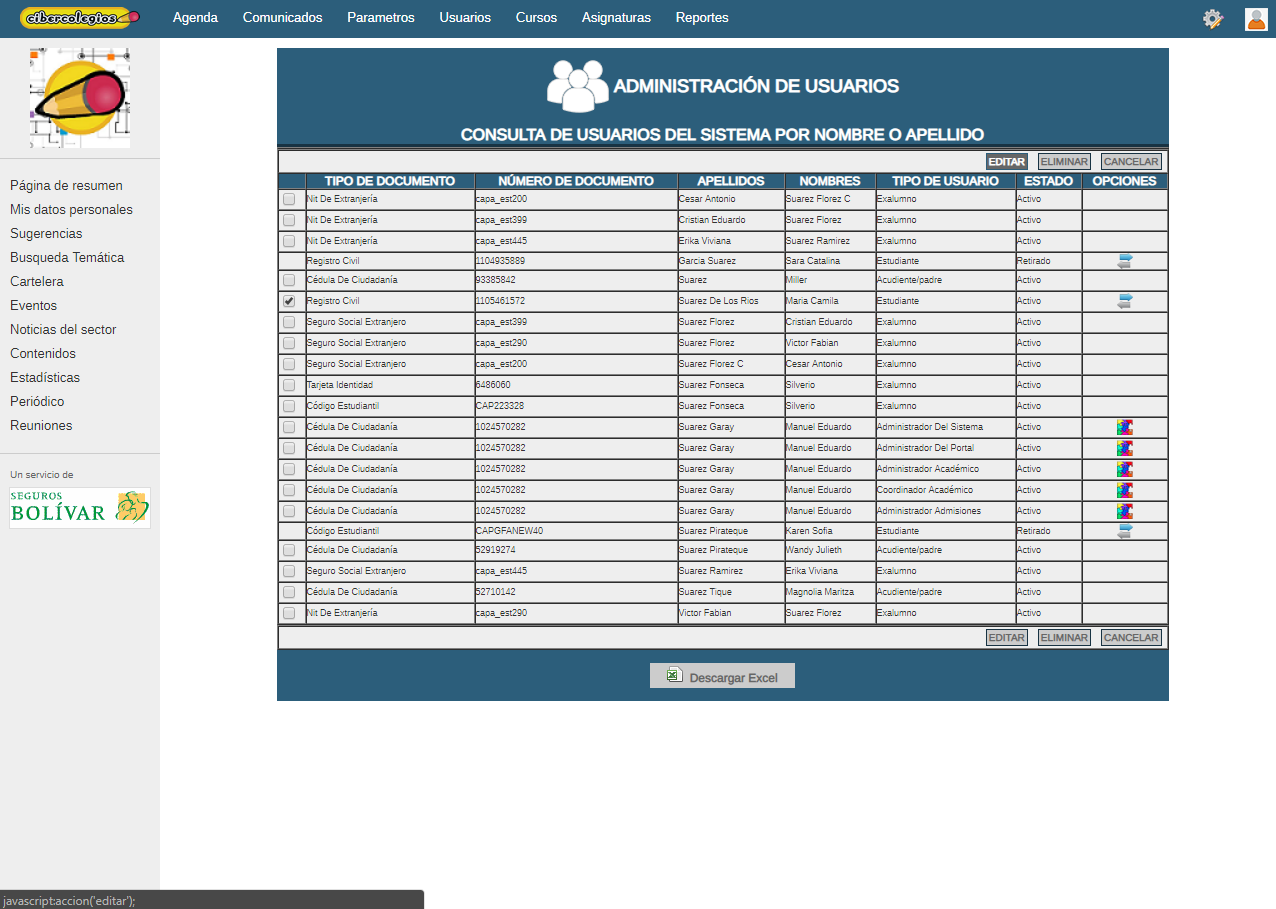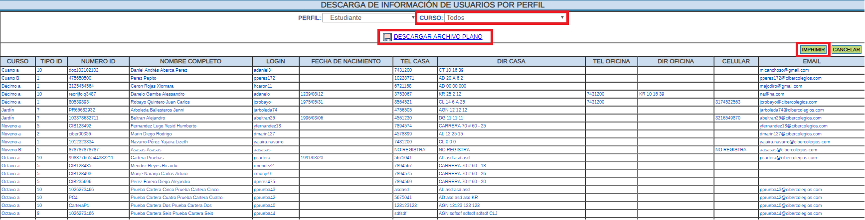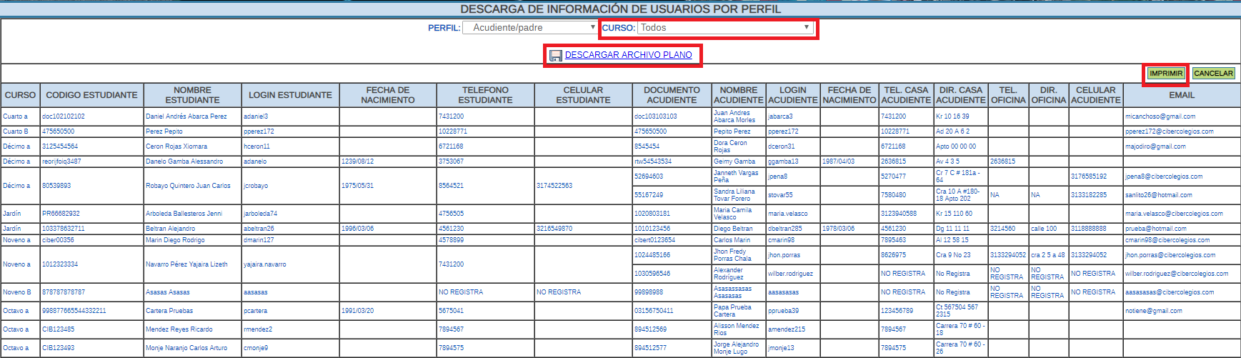 ¿Cómo descargar los datos básicos de los estudiantes y acudientes de la institución? |