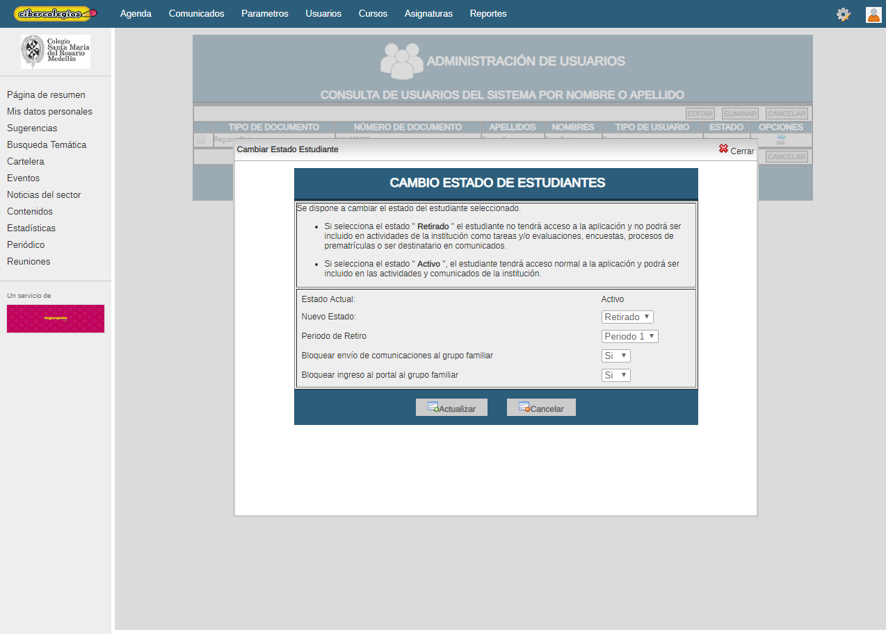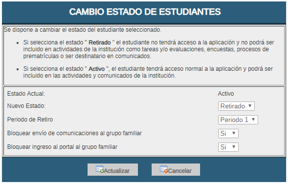 El retiro de estudiantes lo realizamos cuando un estudiantes por cualquier motivo no estarán presentes en la institución por un periodo y por el resto de año lectivo |